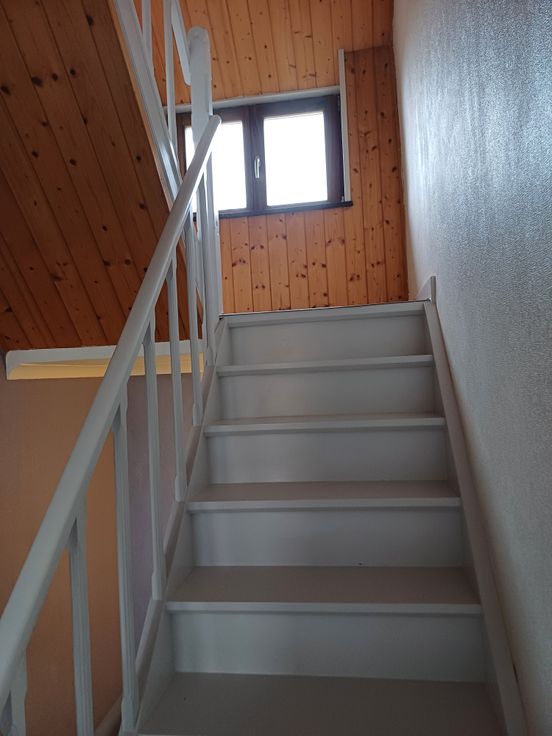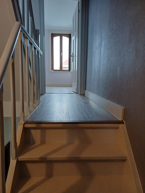 Eerste verdiep met 2 mooie slaapkamers. Trap naar zolderverdiep met mansardekamer en zolderruimte.