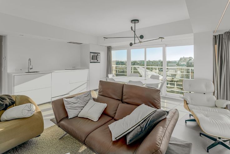 Dit prachtige appartement is volledig gerenoveerd met oog voor detail en afgewerkt met hoogwaardige materialen. De ruime en lichtrijke leefruimte is volledig zongericht, waardoor u de hele dag kan genieten van een warme en aangename sfeer. Vanuit de leefruimte en het terras heeft u een prachtig lateraal zicht op zee, ideaal om helemaal tot rust te komen.