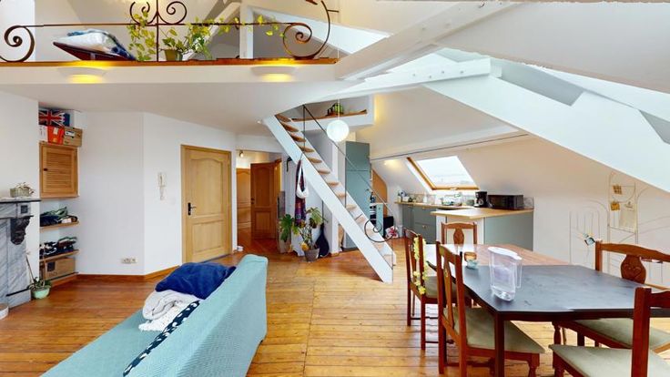 Su une des plus belles avenues de Schaerbeek, et proche du parc Josaphat, dans un immeuble de caractère, 5Bricks vous présente ce bel appartement rénové en 2022, et situé au dernier étage d'un immeuble de caractère. Cet appartement (93 m² habitables: surface au sol) se compose d'un vaste living/salle-à-manger de 47 m² avec cuisine US, d'un hall de nuit, de 2 chambres-à-coucher (12 et 9 m²), d'une salle de douche, et d'une toilette séparée. Un espace bureau en mezzanine (16 m²), et accessible via le séjour, complète ce lumineux appartement. Chaudière individuelle au gaz (2020).