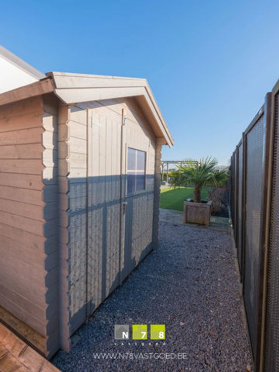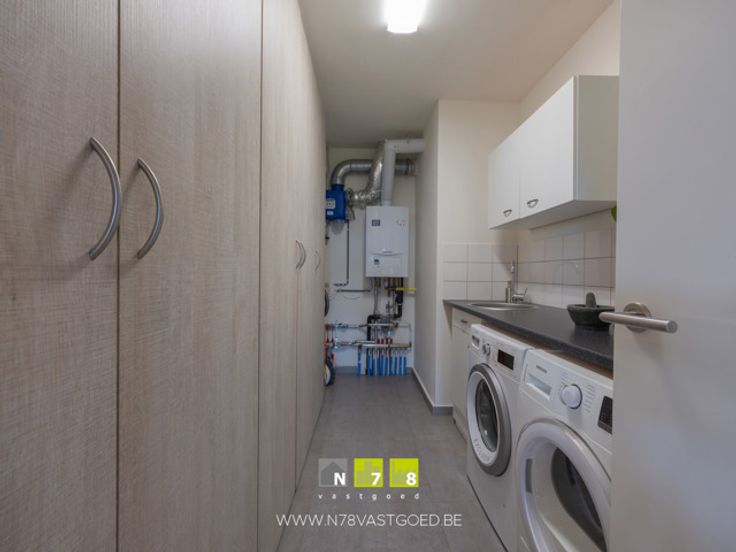 - Berging (8,19m²): tegelvloer, geïnstalleerd met maatkasten, spoelbak, aansluiting wasmachine en droogkast.