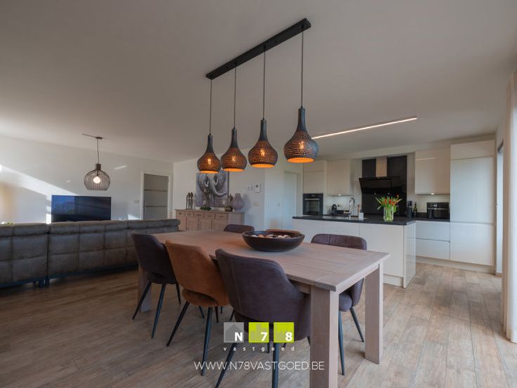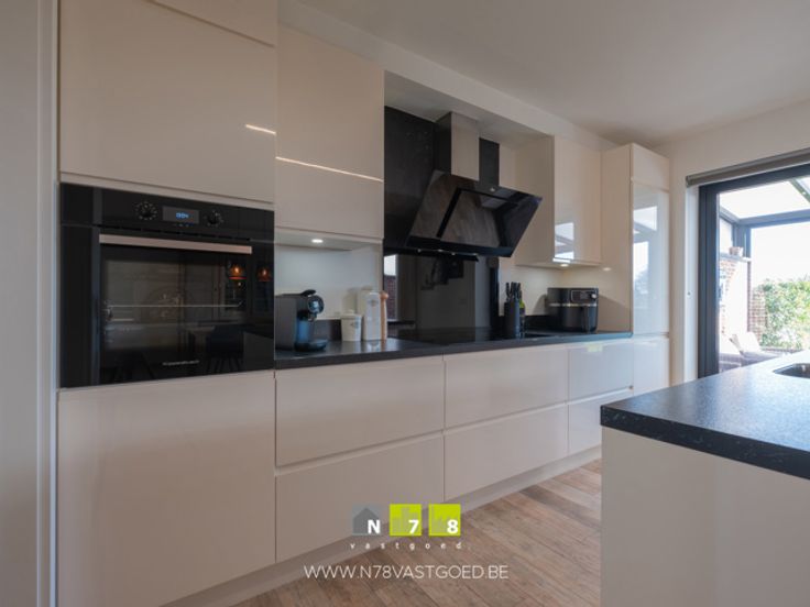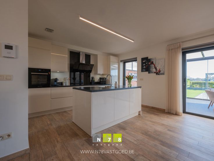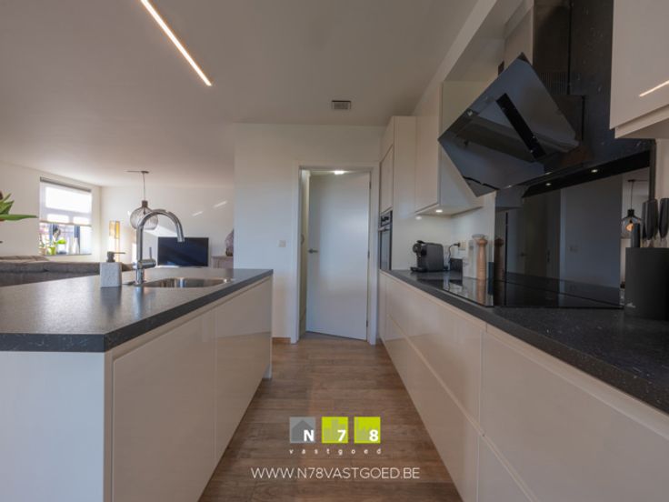 - Keuken (8,66m²): tegelvloer; geïnstalleerd met onderkasten, bovenkasten, lades, koelkast, oven, inductie kookplaat, dampkap, vaatwasser.