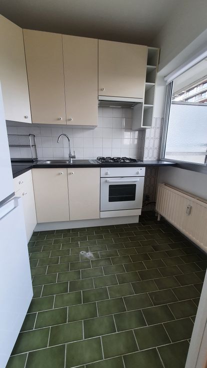 Charmant, zeer licht appartement met zonnig terras. Bestaande uit een woonkamer met ruimte voor een bed. Gesloten keuken. Bergruimte in de hal. Terras van circa 8 m². Kelder.
