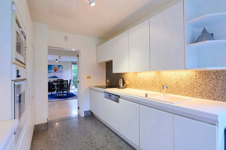 In Sint-Genesius-Rode presenteert Bathim in de prachtige Lindenlaan een architecten villa uit 1988, een echt pareltje voor wie op zoek is naar een unieke woning. Zodra je binnenkomt, vind je een grote woon- en eetkamer boordevol daglicht, dankzij de grote schuiframen die uitgeven op een adembenemend zicht op de beboste vallei beneden. Op de gelijkvloer vind je een aparte familiekeuken met ontbijthoek, een toilet en een dubbele garage. Het hele huis is lumineus, de houten ramen en de travertinvloeren stralen elegantie uit. De trap met glazen dak leidt naar een ruime overloop, die leidt naar vier grote slaapkamers van elk meer dan 20 m². Eén van de kamers heeft een eigen badkamer met ligbad, douche en toilet. Een tweede badkamer en een apart toilet vervolledigen de eerste verdieping. Beneden biedt de grote kelder een wasruimte, opslagruimte en een grote speelkamer, met pingpongtafel en directe toegang tot de tuin. Vanaf het terras kun je genieten van de middagzon terwijl je de natuurlijke omgeving in je opneemt. De voortuin is vlak, terwijl de achtertuin helt naar de vallei. Het huis heeft ook een garage voor twee auto's en extra parkeerplaatsen. EPC B en recente Viessmann verwarmingsketel, maar renovatie werken zijn vereist om het huis volledig aan te passen aan hedendaagse woonstandaarden Bezoeken met Laurent 0472 32 92 05 of lvd@bathim.be.
