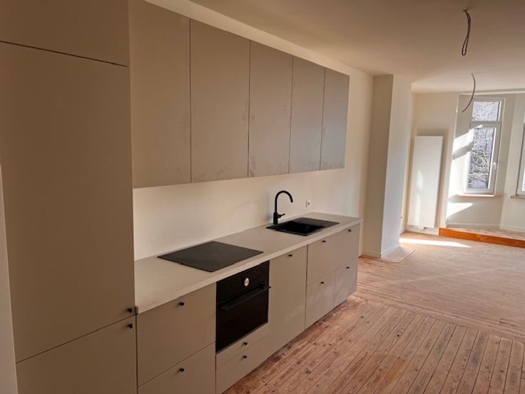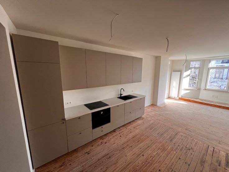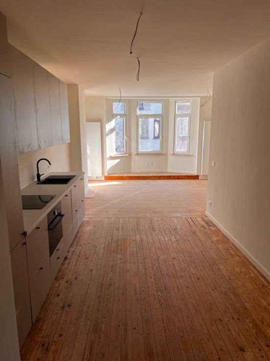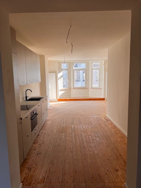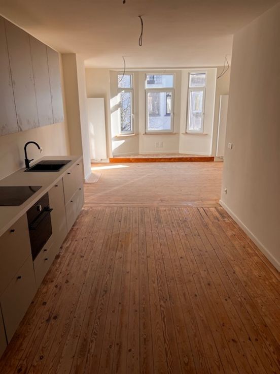 Laatste appartement! Renovatieproject van 8 app. op de grens met Zurenborg in het mooie stuk van de Kroonstraat. Gelegen op de 1e verdieping, zonnige woonkamer met erker met zicht op bomen, leefkeuken, masterbedroom met walk-in douche, bureau/dressing en 2e slaapkamer, aparte WC en praktische berging. U kan nog kiezen wat betreft keuken en badkamer ( foto's zijn van de 2e verdieping ) wees er snel bij = laatste unit.