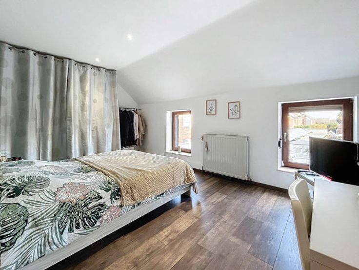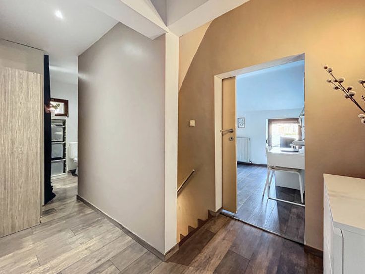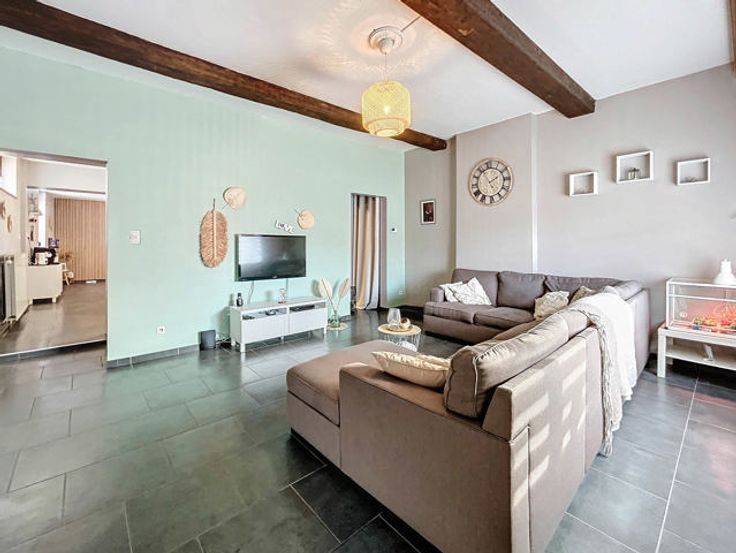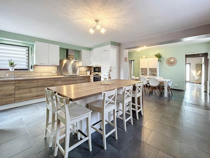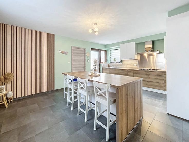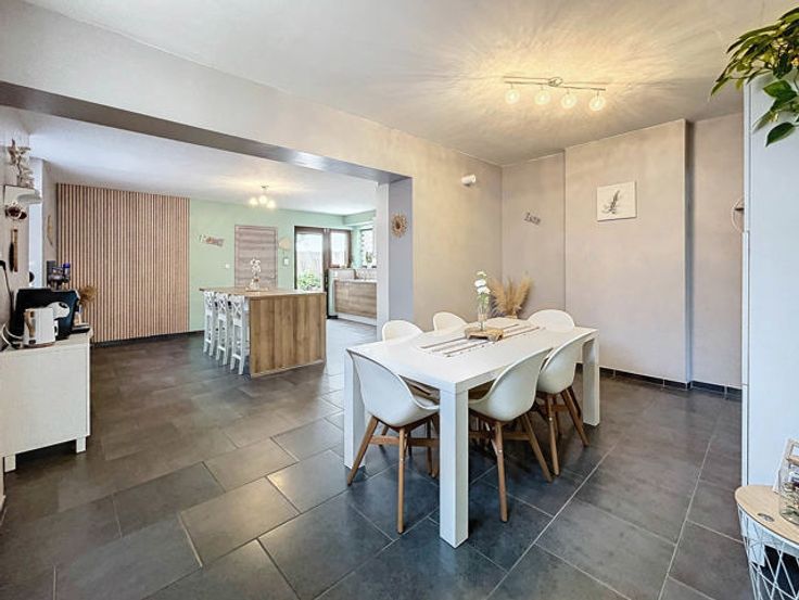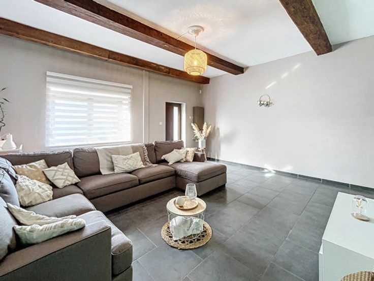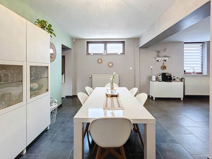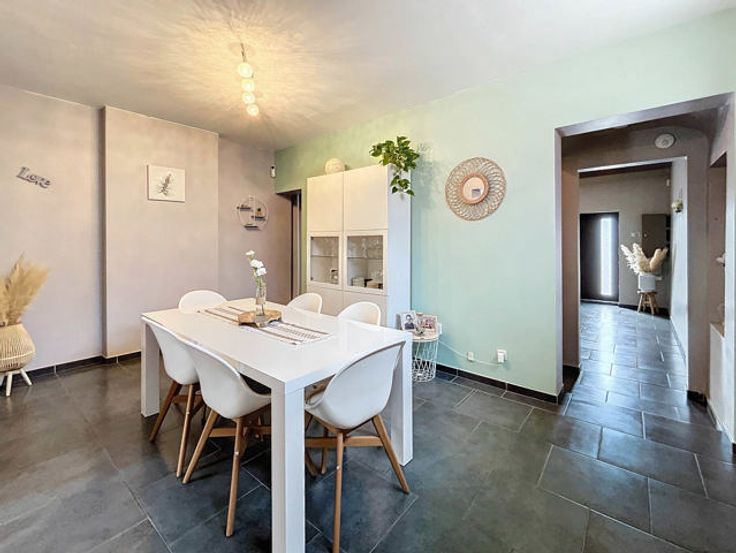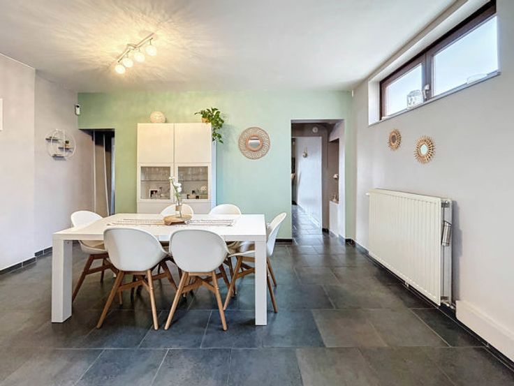 L’agence immobilière STRAZZERI’MMO vous présente cette charmante maison 3 façades rénovée et habitable de suite comprenant 3 ch, garage, terrasse, parking et jardin située dans une rue calme à Souvret et proche de toutes commodités (transports, commerces, écoles, ...). Emplacement stratégique bénéficiant d’un accès aisé en voiture et rapide vers les grands axes. Composition au sous-sol : caves de rangement et coin chaufferie. Au rez : salon (26m2), salle à manger (15m2) ouverte sur cuisine équipée avec espace repas (23m2) (four, hotte, taque, micro-o, lave-v, frigo et congélateur), SDD à l’italienne (7m2) avec WC, meuble lavabo et fenêtre. À l’étage : hall de nuit (10m2) comprenant coin dressing et WC, 2 ch dont 1 avec armoire (16 et 20m2). Combles : ch 3 avec placards (17m2). Ext. : terrasse, garage (3,59x8,97=32m2) avec fosse et coin buanderie (6m2), parking avec portail motorisé, jardin avec serre et abri. FAIRE OFFRE 249.000 EUR > sous réserve d’acceptation des propriétaires. Divers : chassis BOIS DV + volets, cc gaz (chaudière 2018), 15 pann. photov., adoucisseur, très bon PEB cat. « C » , électricité non conforme. Surface selon PEB (plancher) : 195m2. Descriptif à titre informatif et non contractuel.