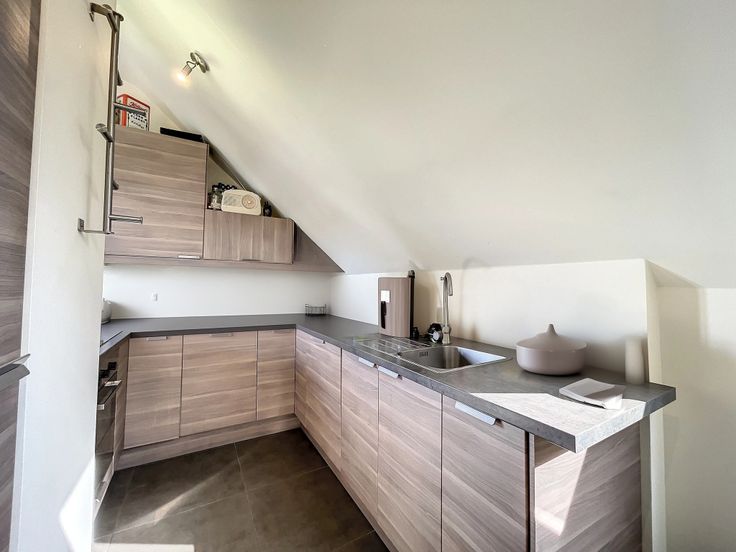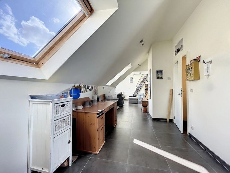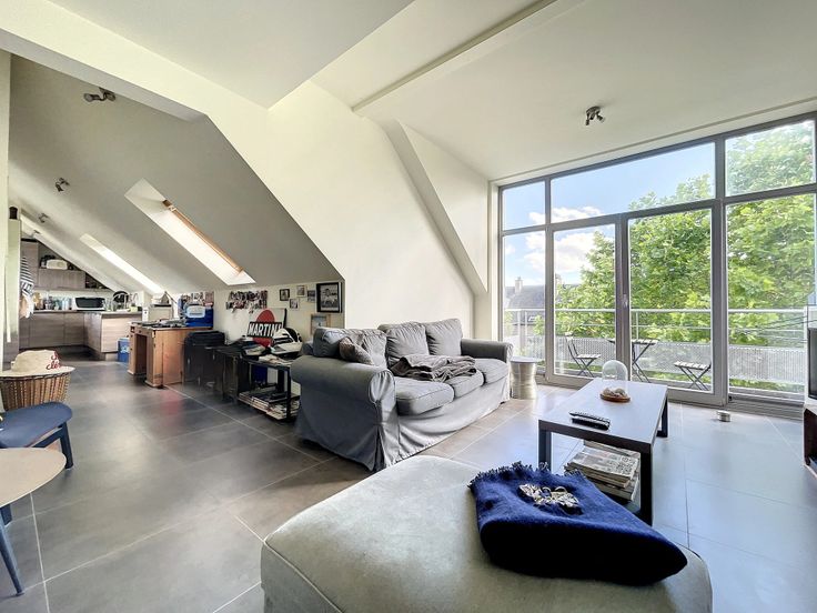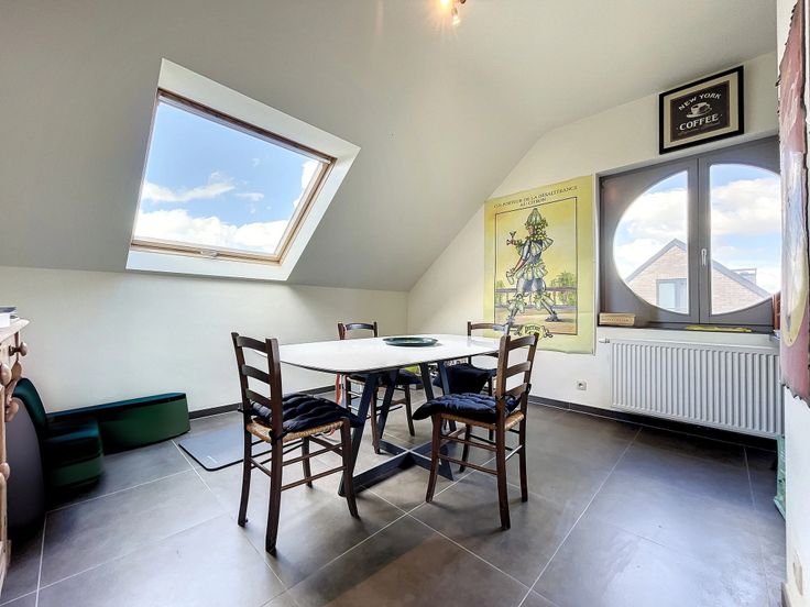 Nice apartment duplex in the area of "4 Sapins". Surace area of +/- 100sqm, composed of a large livingroom, opened kitchen, small terrace, 2 bedrooms, 1 bathroom, cloak in the night hall, underground parking place. PEB C, not to be missed! :, . : : 207 Kwh