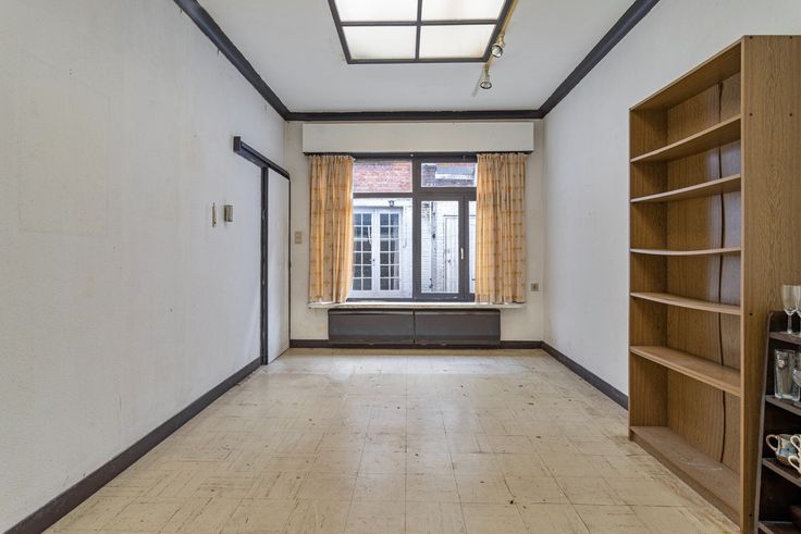 GVL: garage, inkom, leefruimte, keuken, bergplaats, toilet en kelder, patio/ruime stadskoer