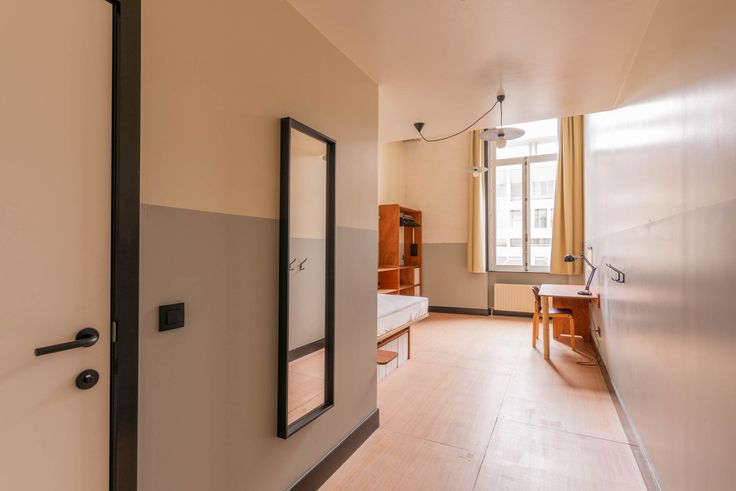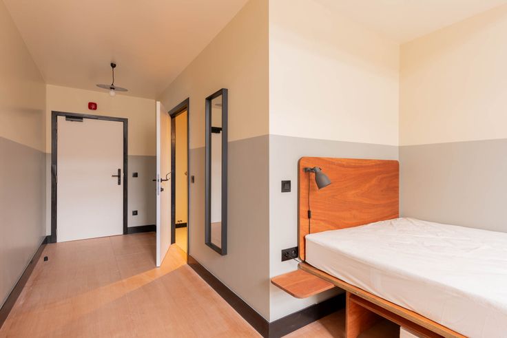 Je huurt een privékamer van 27 m² (PMR-toegankelijk) met een eigen badkamer, bureau, kledingkast en voldoende opbergruimte, terwijl je de gemeenschappelijke ruimtes (keuken, woonkamer, fitnessruimte, etc.) deelt.