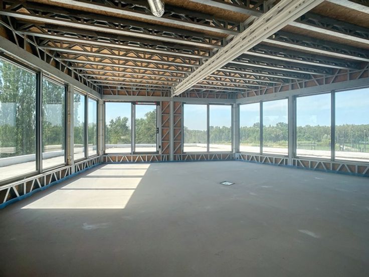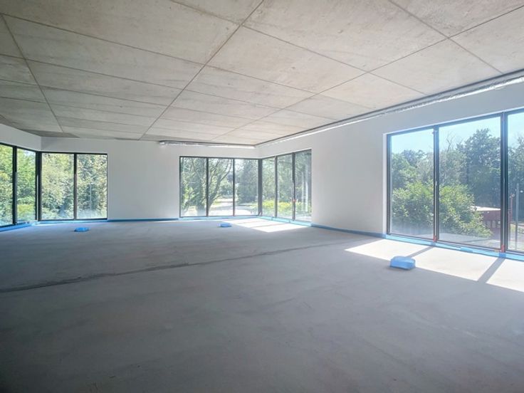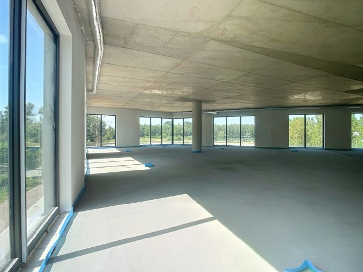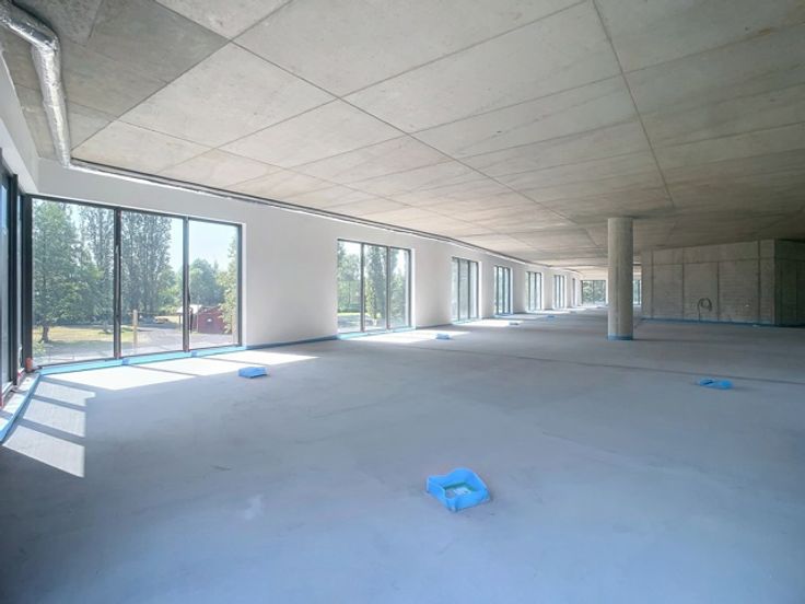 Deze moderne kantoorruimte van 300m² is gelegen op een centrale en strategische locatie langs de Groeningenlei 74 in Kontich, vlakbij de afrit naar de E19. De locatie ligt op de as tussen Brussel, Mechelen en Antwerpen. Dit gloednieuwe kantoorgebouw bevindt zich op een terrein van 6.486m², waarvan 2.003m² bebouwd is. De ruimte wordt opgeleverd met een systeemplafond, tapijttegels, sanitaire voorzieningen, verlichting en een HVAC-installatie, wat zorgt voor een comfortabele en efficiënte werkomgeving. Op het terrein zijn er 5 privatieve parkeerplaatsen met laadpaal beschikbaar aan €80 per plaats per maand. Daarnaast zijn er 200 buitenparkeerplaatsen die gratis te gebruiken zijn tijdens kantooruren. De combinatie van een groene omgeving, uitstekende bereikbaarheid en moderne faciliteiten maakt deze kantoorruimte een aantrekkelijke keuze voor professionele activiteiten.
