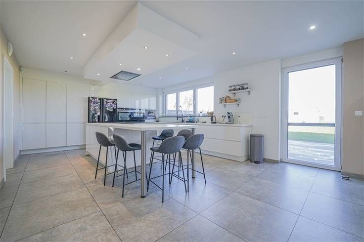 Sorry er is geen nederlandse vertaling beschikbaar. Visite virtuelle: https://youtu.be/qg4XmHFhbeE?si=i-3zRlLfnNur0fUz Spacieuse villa située à Rocourt à proximité de toutes les commodités d'une superficie de 476 m² d'après PEB sur un terrain de 2544m². Composition: rez-de-chaussée: vaste hall d'entrée, séjour, salle à manger, cuisine, buanderie, salle de douche, WC, chambre 1 ou bureau, garage. 1er étage: hall de nuit, 5 chambres, une salle de douche, un wc. 2e étage: grenier aménagé en chambres + salle de cinéma. Extérieurs: parkings pour plusieurs voitures devant, terrasse, jardin et abris de jardin. Particularités: VMC simple flux, DV en PVC, Chauffage sol (gaz condensation), Panneaux photovoltaïques, alarme, Caméra.