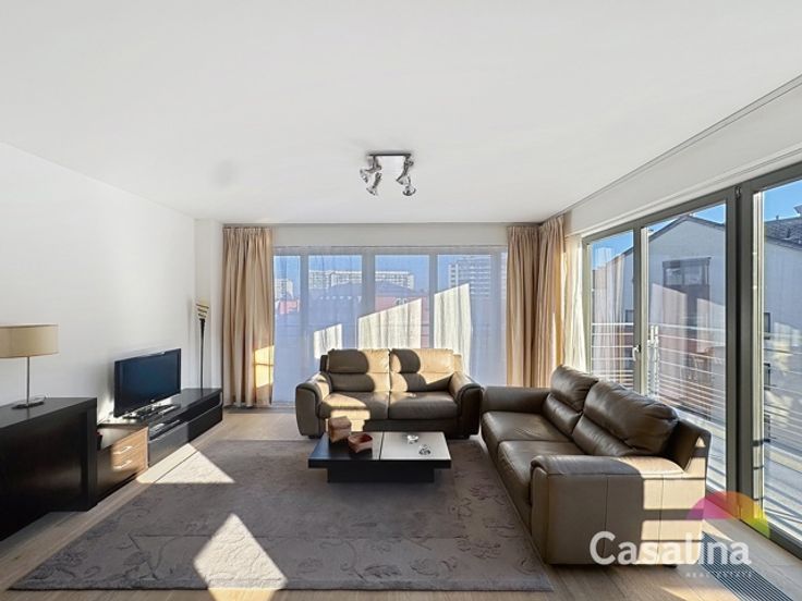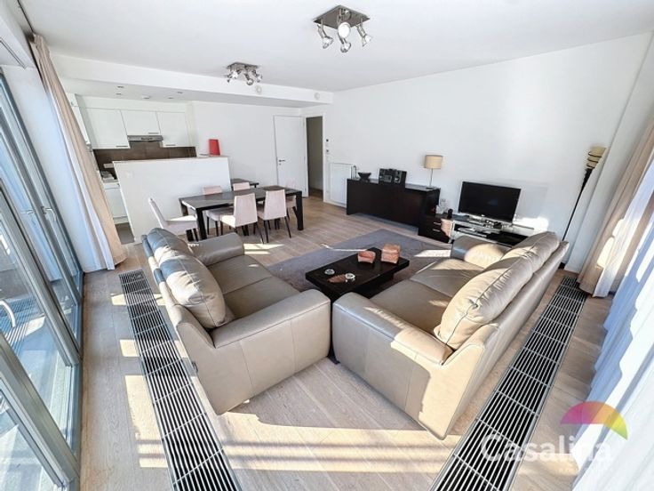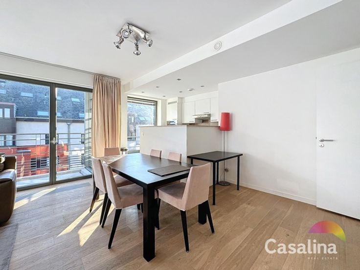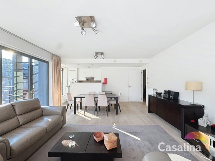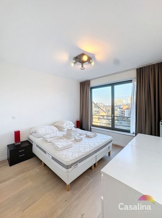Casalina Real Estate biedt u exclusief te huur aan – een ruim gemeubeld appartement van 90m2 met mooi terras op het Zuiden gericht, gelegen op de 5e verdieping van een gebouw uit 2010, bereikbaar met een lift. Gelegen in de nabijheid van winkels, scholen, openbaar vervoer, het sportcentrum van Evere en de NAVO. Indeling van het appartement: het appartement beschikt over een inkomhal met vestiaire, een apart toilet, een berging met aansluitingen voor een wasmachine en droger, een ruime woonkamer met toegang tot het terras, een volledig uitgeruste keuken (koelkast, vaatwasser, oven, kookplaat en dampkap), een nachthal, twee slaapkamers, een badkamer met dubbele wastafel, een douchekamer, een kelder en een autostaanplaats voor €100/maand. Extra informatie: Het appartement is voorzien van een beveiligde deur en een videofoon.  Informatie syndicus: De gemeenschappelijke kosten bedragen €125/maand. Wettelijke informatie: EPC is C+, met een waarde van 113kWh/m2/jaar (20241115). Vraag naar onze voorwaarden voor zorgeloos beheer van uw huurpand. Voor meer informatie en foto’s van het appartement, bezoek onze website www.casalina.be, neem contact met ons op via info@casalina.be of bel 02 705 11 10. Deze informatie en oppervlakte is louter indicatief en zijn niet contractueel bindend.