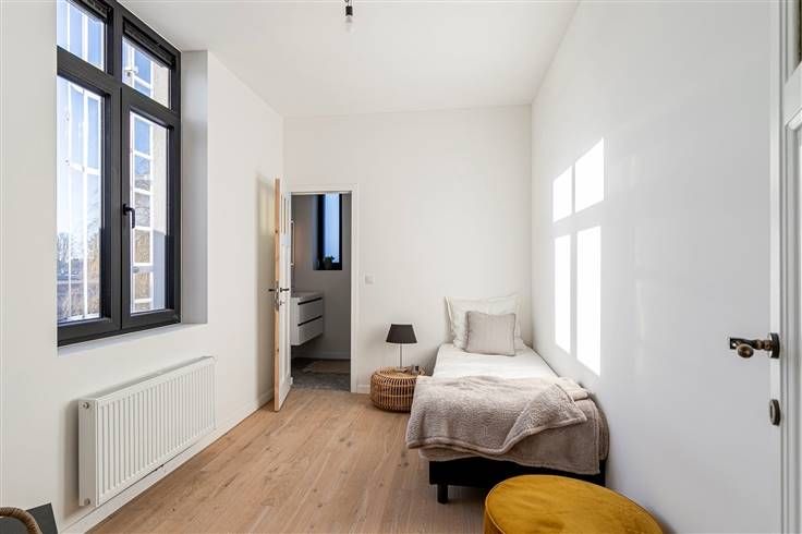 Hoogwaardig gerenoveerd appartement (78 m²) met 2 Kamers/bureel -dressing ruimte, 2 badkamers en terras (4 m²) in Berchem. . Het pand is gelegen op een boogscheut van Berchem-station, wat het een ideale locatie maakt voor wie pendelt met het OV. Ook aan velo-stations is er geen gebrek en de snelweg bereik je in een mum van tijd. Het appartement bevindt zich op de tweede verdieping van een gebouw van 3 hoog. Er zijn geen vaste kosten. Het gebouw is volledig gerenoveerd in 2023. Hierbij zijn duurzame materialen gebruikt en is er rekening gehouden met de huidige normen, wat resulteert in een uiterst gunstige EPC-score B (118 kWh/m² jaar). Het dak en de achtergevel zijn geïsoleerd conform de norm 2050 en tussen de verdiepingen is er geluids- en warmte-isolatiegeplaatst. Verder is de elektriciteit conform en is er een nieuwe verwarmingsketel geplaatst en zijn ook de leidingen vernieuwd. Op de gehele renovatie zijn er lopende garanties. Je komt binnen in de leefruimte met open keuken (26 m²). De keuken is van Scavolini (italian design) en is uitgerust met toestellen van SMEG. Van hieruit heb je toegang tot het west-georiënteerde terras (4 m²). Vooraan situeert zich een eerste slaapkamer (20 m²) met badkamer (4 m²). De 2de ruimte /bureel -dressing (11 m²) en badkamer (5 m²) zijn gelegen aan de achterzijde. Tot slot beschikt het appartement nog over twee privatieve kelderbergingen. Bruikbare vloeropp. 78 m² ref.: bruto vloeropp. EPC-certificaat.