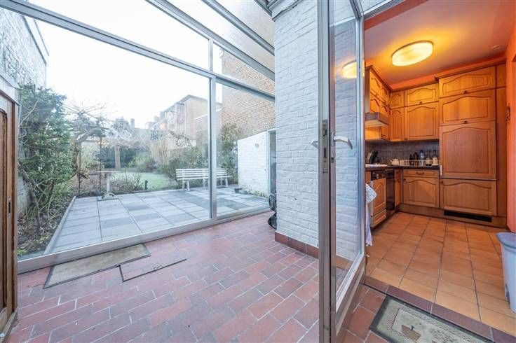 veranda (19m2) in L-vorm, WC met wastafeltje, terras en grote tuin (28m diep)