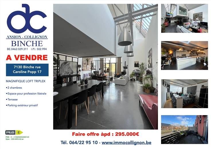 Sorry er is geen nederlandse vertaling beschikbaar. À vendre, Binche, ce magnifique loft de près de 230 m2 habitables. Dans un style épuré, il se structure comme un triplex alliant un mariage parfait entre l'abondante luminosité et des hauteurs sous plafond raisonnables afin d'optimiser la performance énergétique du bien.