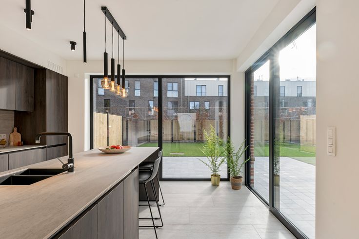 Achteraan krijg je vanuit de leefkeuken via de grote schuifraam direct toegang tot het perfecte georiënteerde terras en tuin.