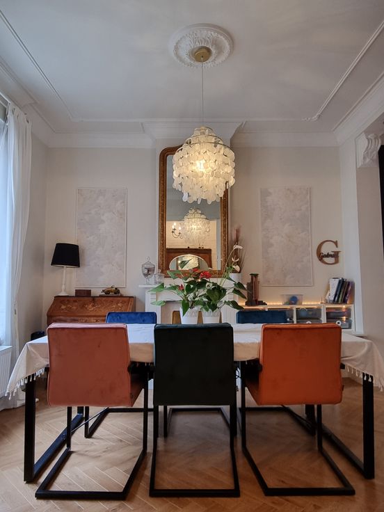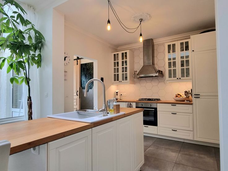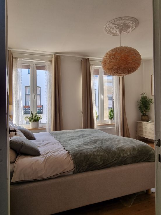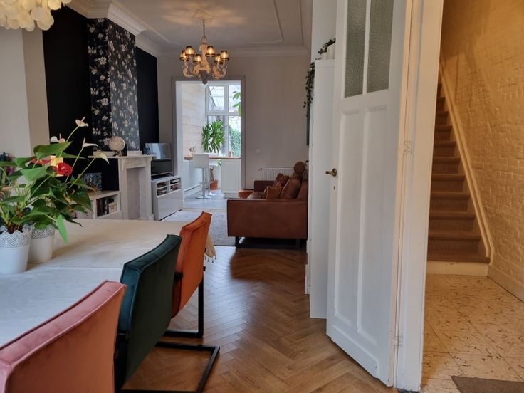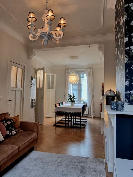 Op het gelijkvloers vindt u de open leefruimte met eetkamer en woonkamer, voorzien van een vissengraatlaminaat en authentieke stijlelementen. De gerenoveerde keuken met moderne toestellen biedt toegang tot de stadstuin met terras, een ideale plek om te ontspannen.
