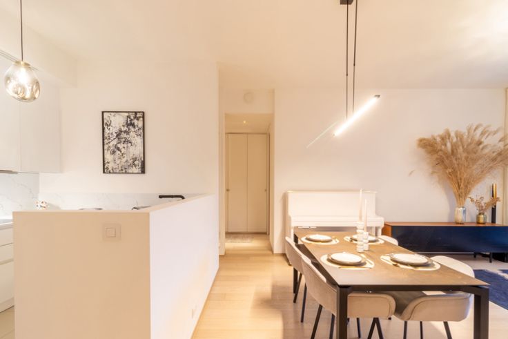 Observatoire, in een privédomein dicht bij alle voorzieningen, heeft MYIMMO Etterbeek het genoegen deze prachtige gemeubileerde flat voor te stellen, genesteld op de begane grond van een mede-eigendom gebouwd in 2019. Deze woning biedt een uitzonderlijke woonomgeving en combineert de rust van het platteland met de nabijheid van de stad. De flat bestaat uit