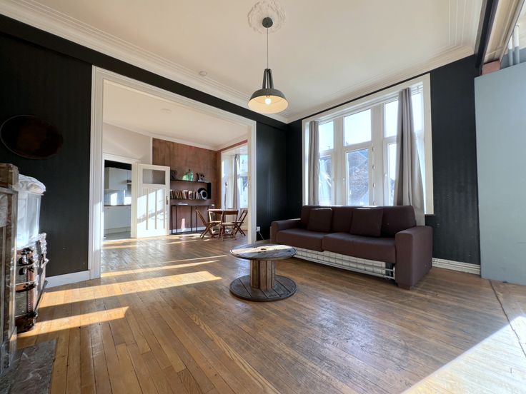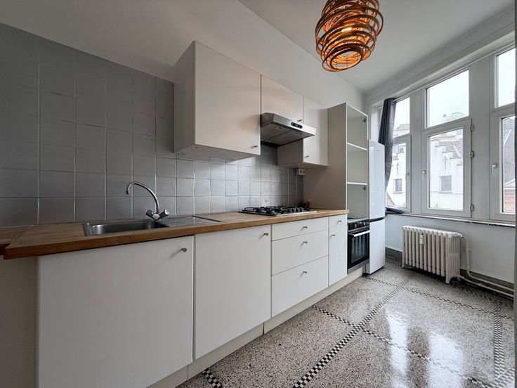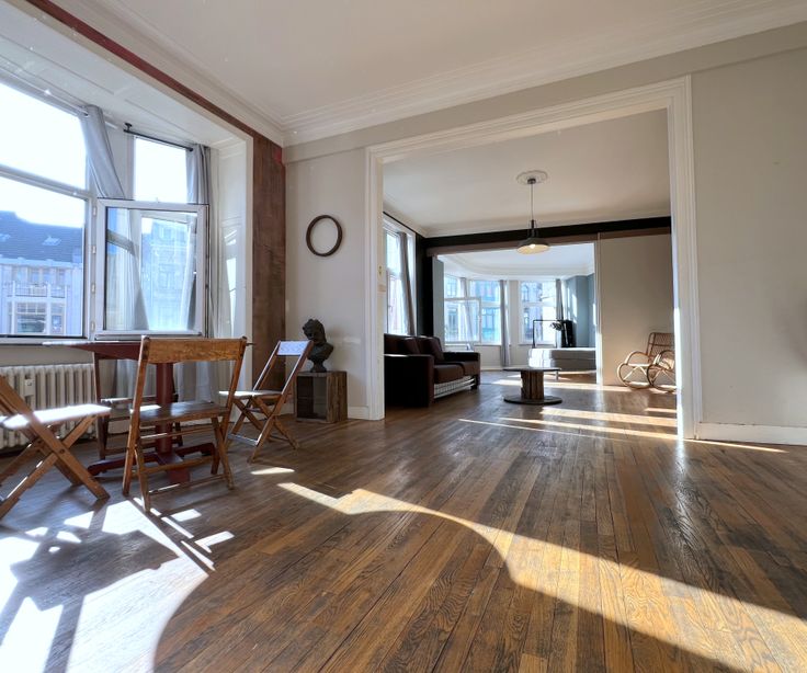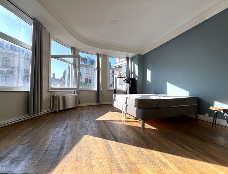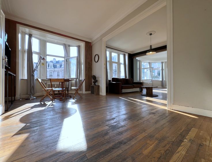 Bourse/Rue du Marché au Charbon, dans un magnifique immeuble de style Art-Déco construit en 1932, spacieux appartement d'une superficie habitable de +/-80m² se composant d'un hall d'entrée, salon/salle à manger +/-35m², cuisine super-équipée, chambre +/-20m², nouvelle salle de bains, toilette. Possibilité de garder les meubles à disposition. Charges 180€ : participation aux communs (ascenseur, syndic, nettoyage, etc.) + chauffage privatif. Renseignements et visites : 0485/47.77.72 - ab@likehome.be