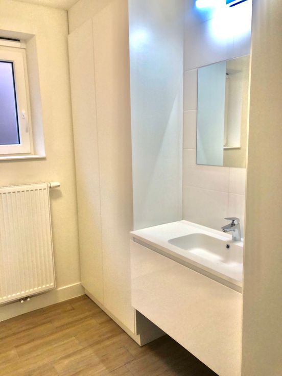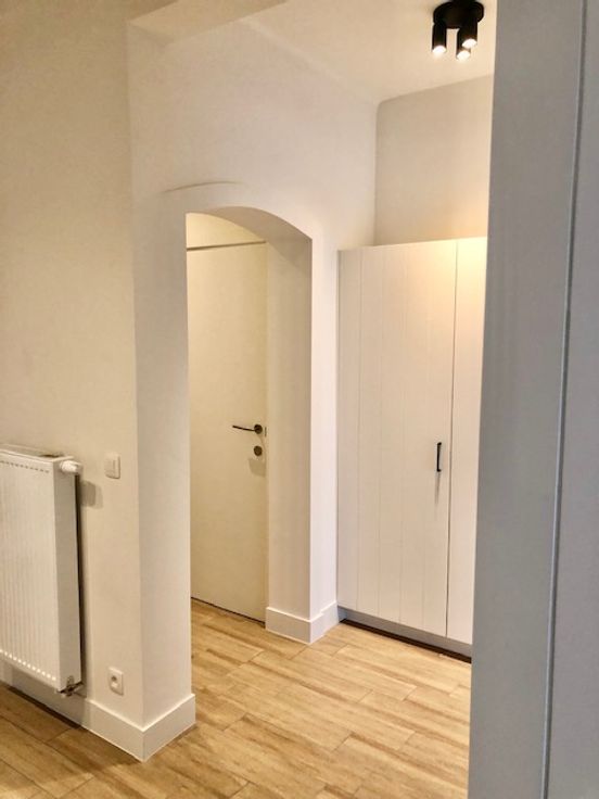 Vestiairekast bij de inkom. Gang met afzonderlijke toilet, badkamer met inloopdouche, lavabomeubel, plaasts voor was en droog en kastruimte. Twee slaapkamers. Overal nieuwe ramen en beglazing 1.0. Overal keramisch parket. Overal led verlichting.