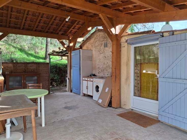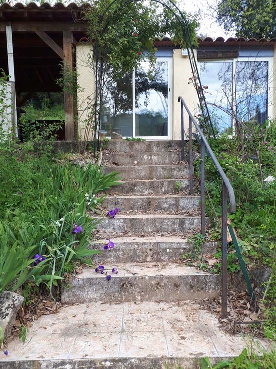 SUD de la France en Provence Verte - Petite maison d'habitation entourée d'un grand jardin de + de 1000m2 au calme dans une impasse, le fond du jardin est au bord d'une rivière pour vous rafraîchir l'été, la maison est sur une partie surélevée et deux terrasses sont couvertes. Située à 1H de la côte, 1H d'Aix-en-Provence, Saint-Raphaël ou Hyères, entre mer et montagne.