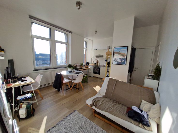 Jambes, Appartement 1 chb remis à neuf en 2021 (38m²). Loyer 720€/ Pas de charges communes. Au 2 ième étage sans ascenseur, à côté de l'Elysette, à 200 m du Pont de Jambes et à 200 m de l'Enjambée et de la Meuse. Séjour et Cuisine équipée (L-V), un hall avec un empl pour mach à laver, un WC, une chambre et une SDD. Une cave. Gaz et Elec privatifs. Prov Eau: 10e/mois. Vue Citadelle et à prox immédiate des commerces, écoles et transp en commun. Peb: B. Libre le 1/5/205. Pour tout rens T: 0477 62 52 71.