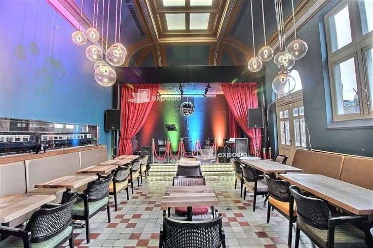 1) Grote zaal (±160m²): Restaurantzaal met podium voor concerten en artiestenproducties. Grote bar met 24 vatpompen, zitplaatsen voor 50 personen.