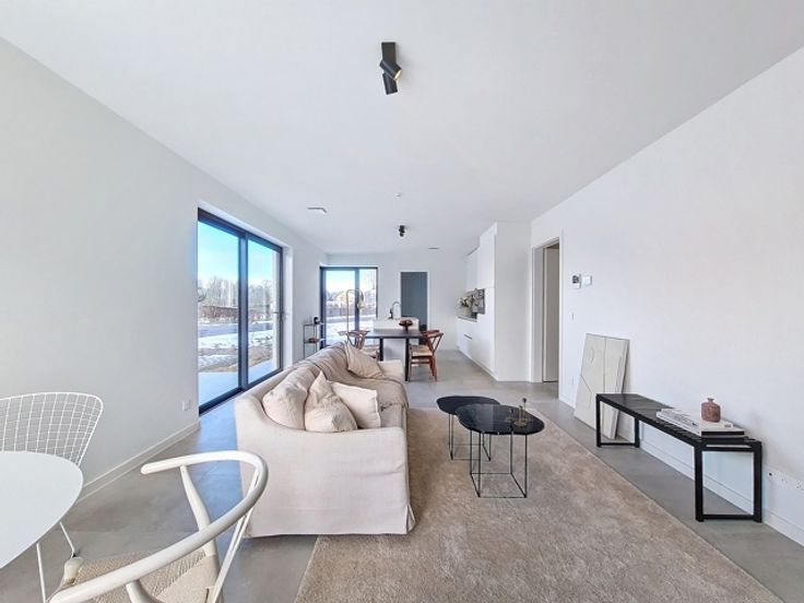 Trevi Liège vous présente ce magnifique rez-de-chaussée neuf composée de 3 chambres (ou 2 chambres + bureau/dressing), situé dans un environnement paisible et verdoyant, au sein d'une résidence de standing composée de 24 appartements répartis en 4 résidences. Il se compose d’un hall d’entrée avec vestiaire, d’un séjour lumineux avec cuisine équipée, de deux terrasses, d’un hall de nuit, d’une salle de douche, d’un WC séparé, d’une buanderie, ainsi que de deux chambres et d’une pièce polyvalente pouvant servir de dressing, bureau ou chambre d’enfant. Construit avec des matériaux et équipements de qualité, il offre des performances énergétiques optimales : PEB A, châssis en aluminium double vitrage, chauffage et refroidissement par le sol via pompe à chaleur Viesmann, système de ventilation double flux avec récupérateur de chaleur, isolation thermique et acoustique efficace. Prix de vente : 283.375€, soumis à la TVA de 21%. Possibilité d’acquérir un emplacement de parking extérieur en supplément pour 7.000€. L’appartement est vendu entièrement fini, avec une livraison prévue à l’acte. Plans, cahier des charges et infos disponibles sur simple demande à l'agence au 04/336.35.82 ou sur notre site www.treviliege.be. Informations données à titre indicatives et non contractuelles. Cette annonce ne constitue pas une offre.