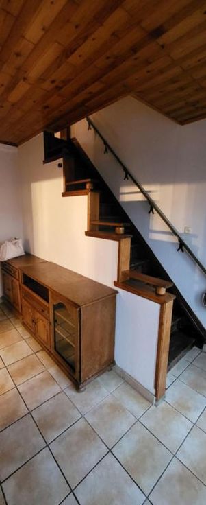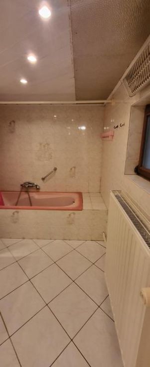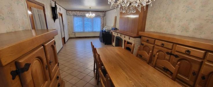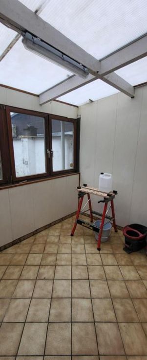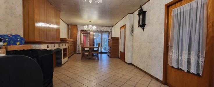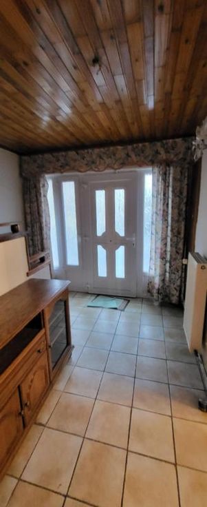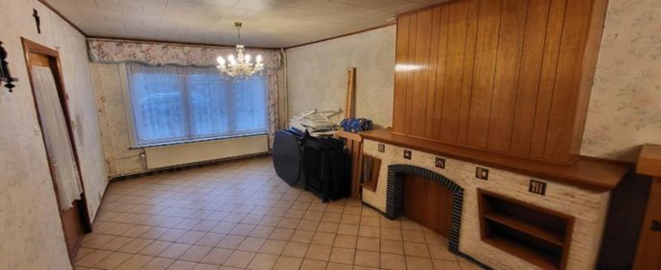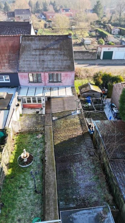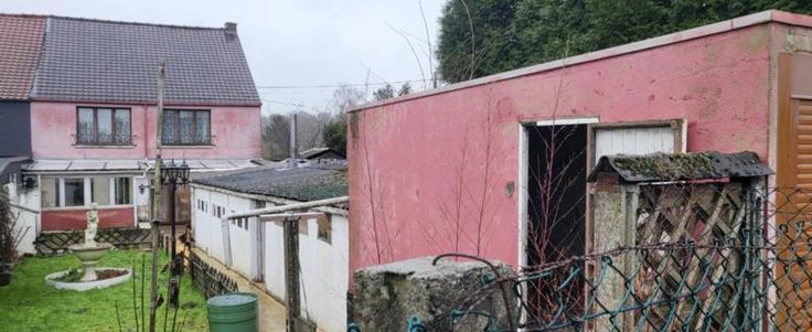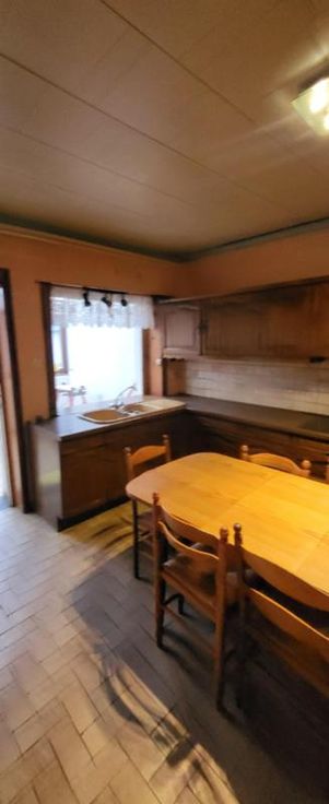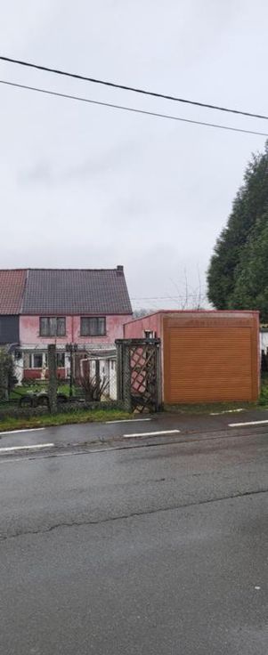 Maison d'habitation 3 façades à rafraîchir avec jardin, cour, terrasse, 2 remises et garage avec porte électrique à l'arrière de la maison (rue de L'Aisette) sur et avec 2a 54ca. Rez: hall, salon, salle à manger, cuisine équipée en chêne, salle de bains avec wc, pergola et véranda. Cave. Etage: hall de nuit, 3 chambres, salle de bains et grenier isolé. Double vitrage (PVC à l'avant - bois à l'arrière), volets (électriques au rez-de-chaussée (à lavant et un à l'arrière), manuels à l'étage (à l'avant)), 2 citernes. Chauffage central mazout (nouvelle chaudière). Libre d'occupation. R.C.: 528 €. PEB: 336 kwh/m².an (D).
