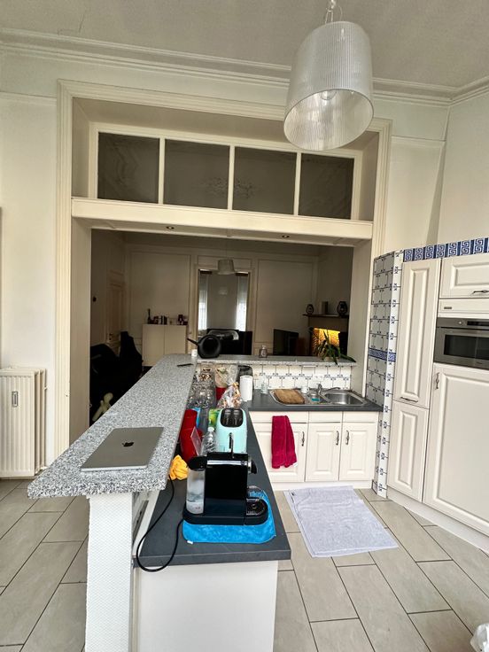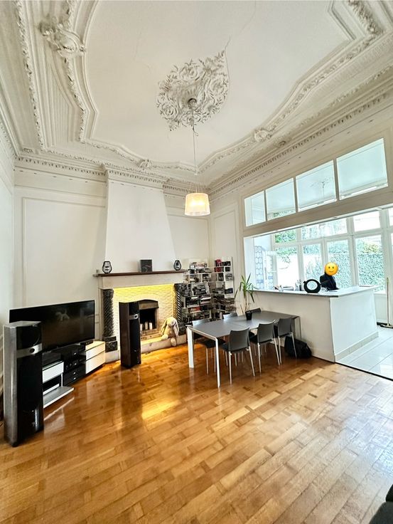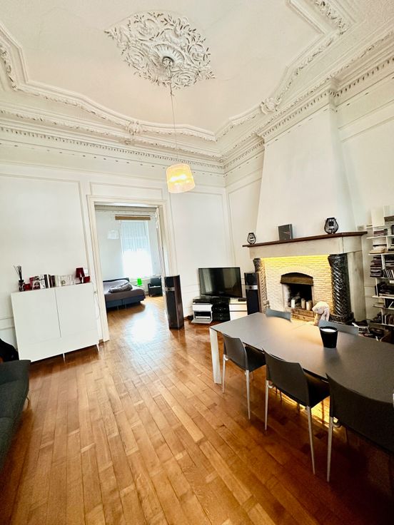 Appartement spacieux et authentique à vendre. Nous vous proposons ce magnifique appartement de 100m2, idéalement situé au rez-de-chaussée d'une magnifique bâtisse située sur la Place Sainte-Véronique. Il dispose d'une charmante cour d'environ 50m2 et de deux chambres lumineuses (28m2 et 14m2). Cet appartement allie confort moderne et charme ancien : parquet massif, moulures et cheminées d'époque. Ne manquez pas cette opportunité unique de vivre au cœur d'un des plus beaux quartier de Liège. Les châssis avant seront prochainement remplacés par de nouveaux châssis noirs. Agence s'abstenir MERCI !!!