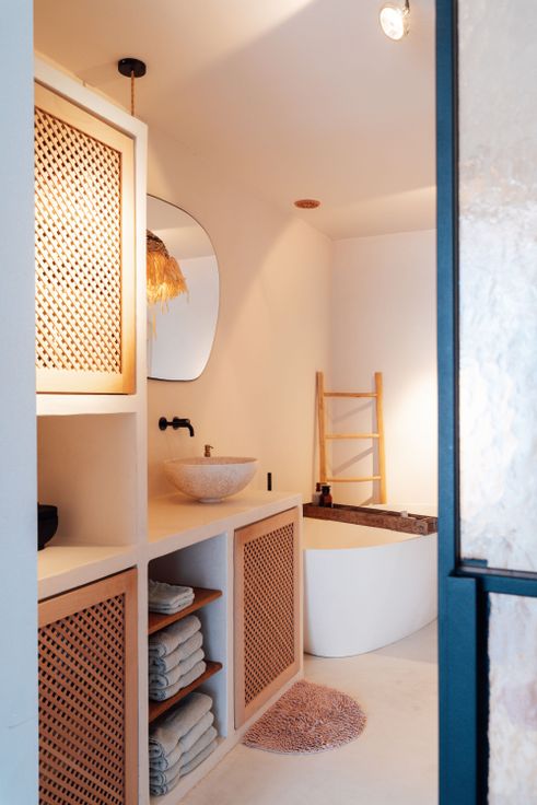 Er zijn 2 badkamers, waarvan één recent vernieuwd met een elegant mortex design, vrijstaand ligbad, inloopdouche met infraroodfunctie en een luxueus lavabomeubel. Daarnaast is er een aparte doucheruimte voor extra comfort.