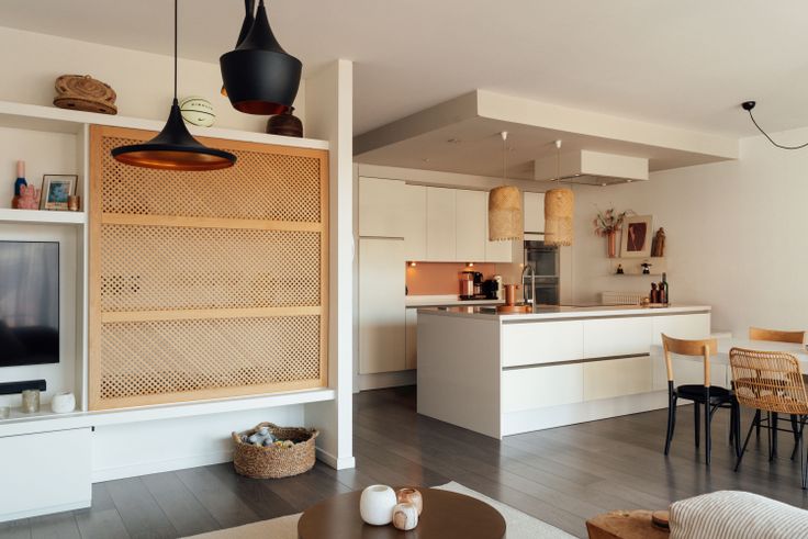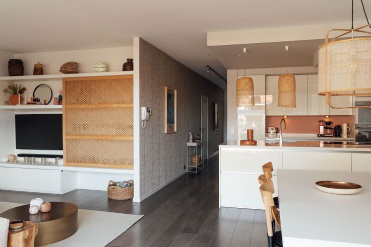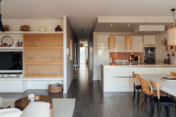De lichtrijke woonkamer met een stijlvolle nieuwe ingebouwde tv-kast loopt naadloos over in de mooie open keuken, voorzien van alle premium toestellen (oven, combi-microgolf, koelkast, nieuwe inductiekookplaat en vaatwasser). Aansluitend aan de keuken vindt u een handige ruime pantry/berging.