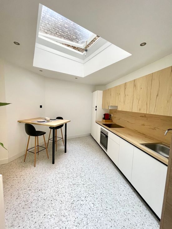 Il se compose d'un séjour agréable donnant sur une toute nouvelle cuisine entièrement équipée. Une chambre aménagée dans un ambiance cosy ainsi qu'une toute nouvelle salle de bain.
