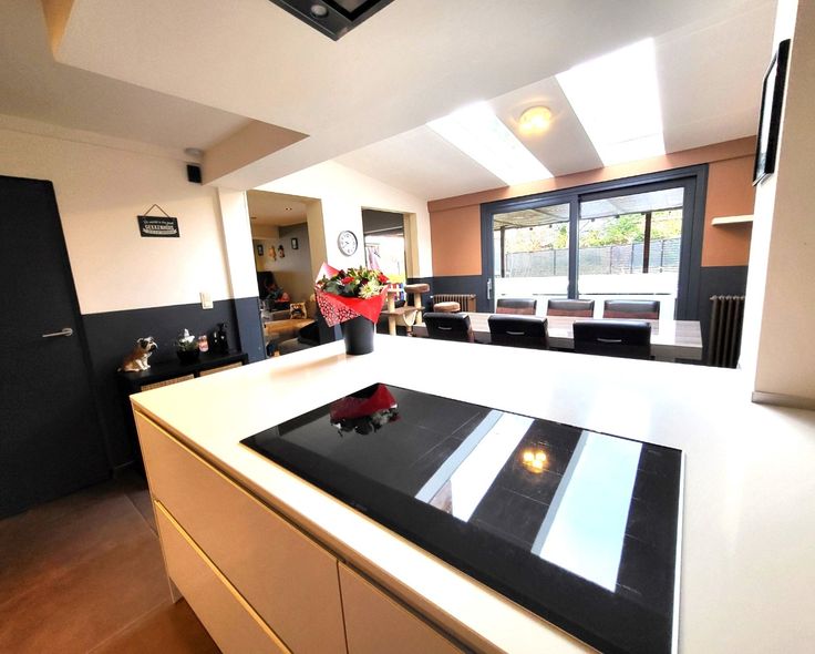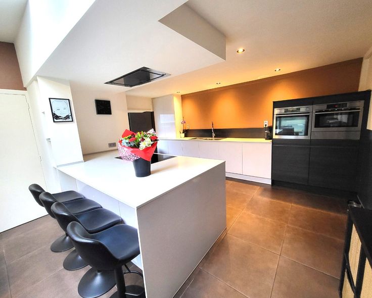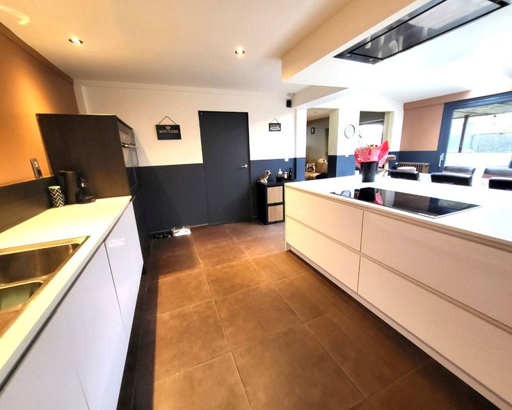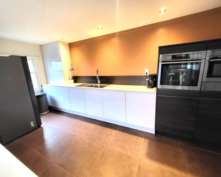 Indeling : ruime inkomhall - woonkamer van 38m² dewelke aansluit op de spiksplinternieuwe keuken met eethoek (20m²).