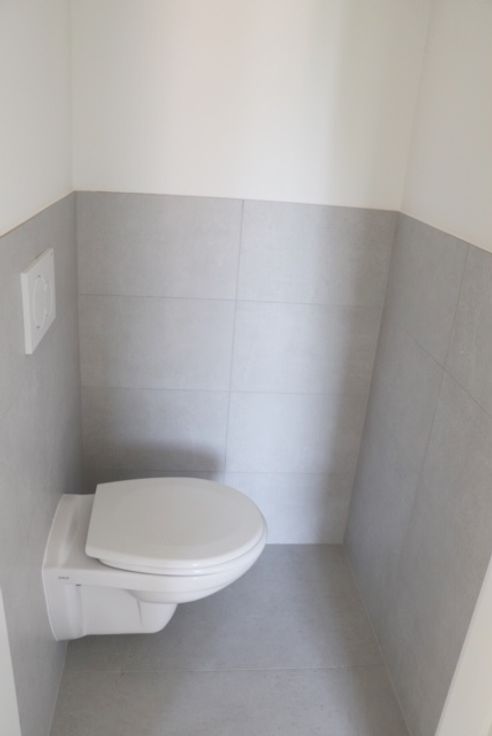 Indeling: inkomhal, gastentoilet, leefruimte met open keuken.