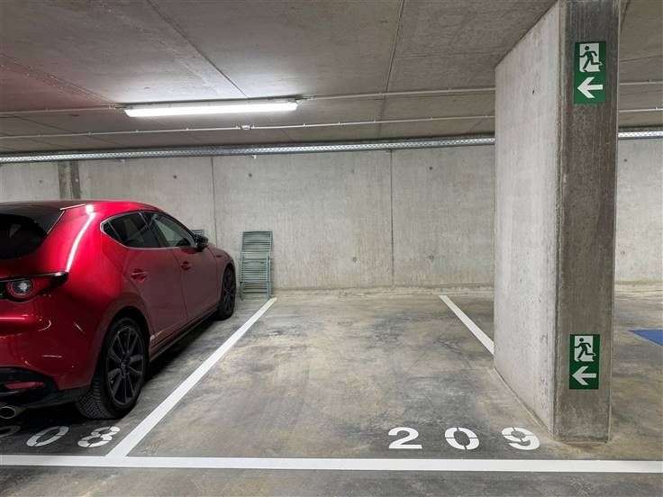 Quartier Tour & Taxis - Overdekte parkeerplaats te huur in een nieuwbouwwoning gelegen in de kelder van een nieuw, beveiligd gebouw. Deze interieriuer parkeerplaats biedt optimale veiligheid dankzij een elektronische deur. De toegang wordt vergemakkelijkt door een lift die beschikbaar is via de gemeenschappelijke ruimten. De parkeergarage is ideaal gelegen in de wijk Tour & Taxis, met een uitstekende bereikbaarheid en directe nabijheid van het openbaar vervoer