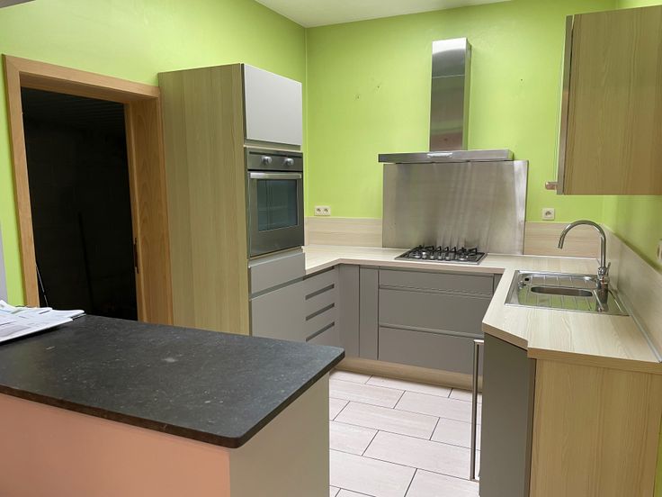 Rez-de-chaussée : salon, salle à manger, cuisine-équipée avec lave-vaisselle, four, taque au gaz, salle de bain avec baignoire et wc, buanderie,