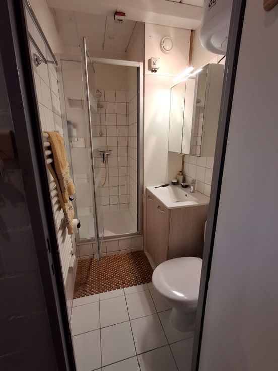 Recent vernieuwde studio (2024) met alle comfort. EPC A; Zonnepanelen, vernieuwd dak + isolatie, warmtepomp, energetische dakkoepel, ventilatie, recente boiler...