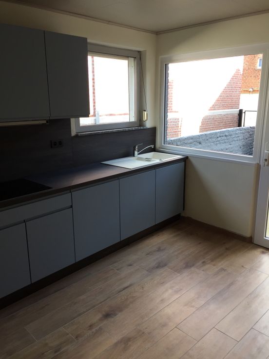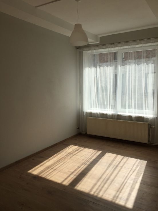 appartement avec cour et garage idealemement pour personne seule ou couple avec 1 enfant 2 chambres (une petite et une grande) living cuisine equipee four et taque induction à proximité des transports sncb et TEC libre au 1er mars