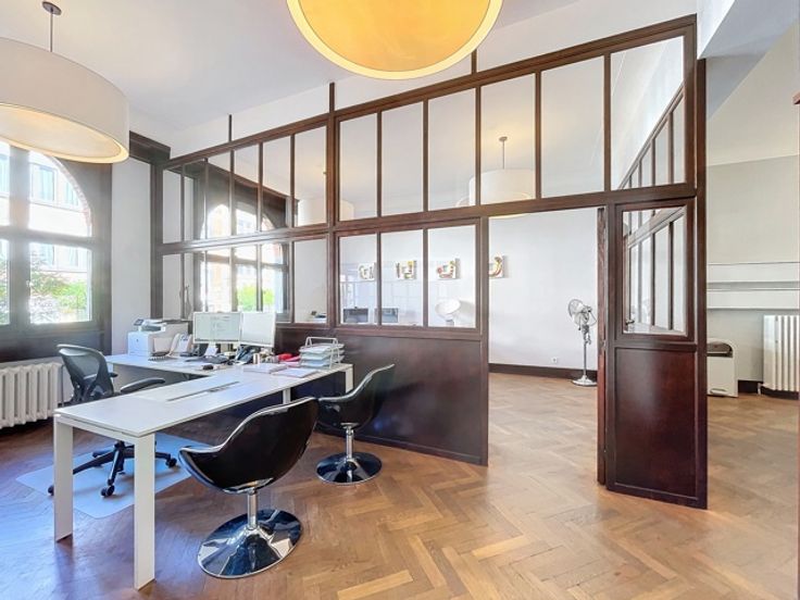 Morgan's Real Estate presenteert deze kantoorruimte van 270m² gelegen in hartje Jette. De kantoren zijn verdeeld over 2 verdiepingen met de mogelijkheid om gebruik en toegangen te scheiden. Momenteel bezet door enerzijds een verzekeringskantoor en anderzijds een evenementenbureau. De kantoren bevinden zich in een karaktervol gebouw vlakbij de metro en winkels tussen Belgica en Spiegelplein. Veel mogelijkheden van ontwikkeling en opstelling. Archief- en opslagruimten, wachtkamer, vergaderruimte. Toiletten en keuken op elke verdieping. Parkeermogelijkheden. Info en bezoeken op 02/430.24.86 of hello@morgans.be