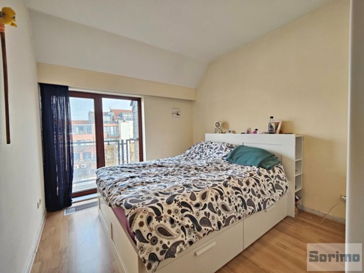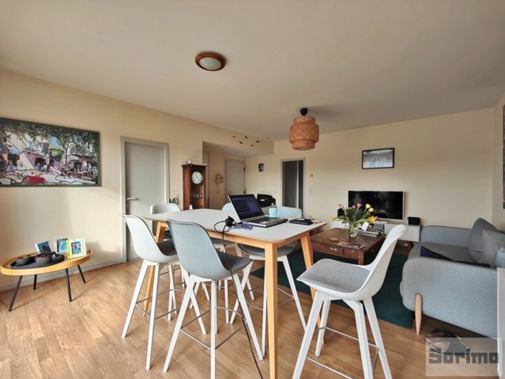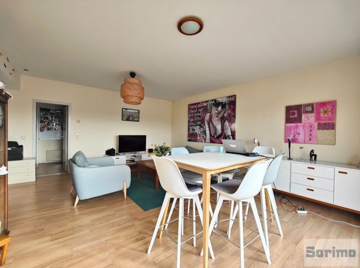 A proximité de la place Dumon, ses commerces et facilités et son marché 3 fois par semaine, agréable appartement non meublé de +/- 94m² se composant d'un hall d'entrée avec vestiaire, séjour de +/- 34 m², terrasse de +/- 10 m² orientée sud-ouest, cuisine super équipée, hall de nuit, 2 chambres avec placards, salle de bains et buanderie. Cave. Garage box une voiture pour un supplément de 150€/mois. Provision mensuelle de charges de 120€ (communs et eau froide). PEB G 459 kWhEP/m²/an - 73kg CO²/m²/an. Libre le 01/05/2025.
