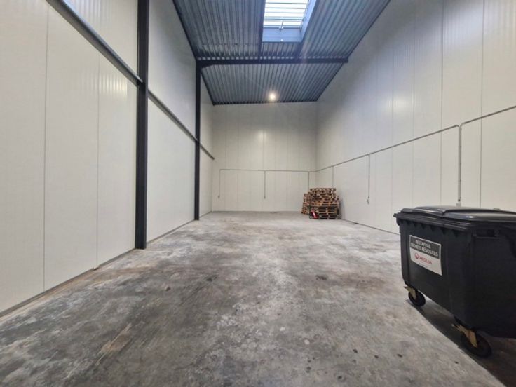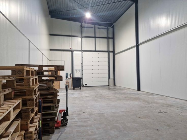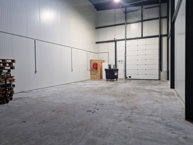 Te huur Te koop magazijn +/- 143 m² hoogte 9 m, een grote sectionaal