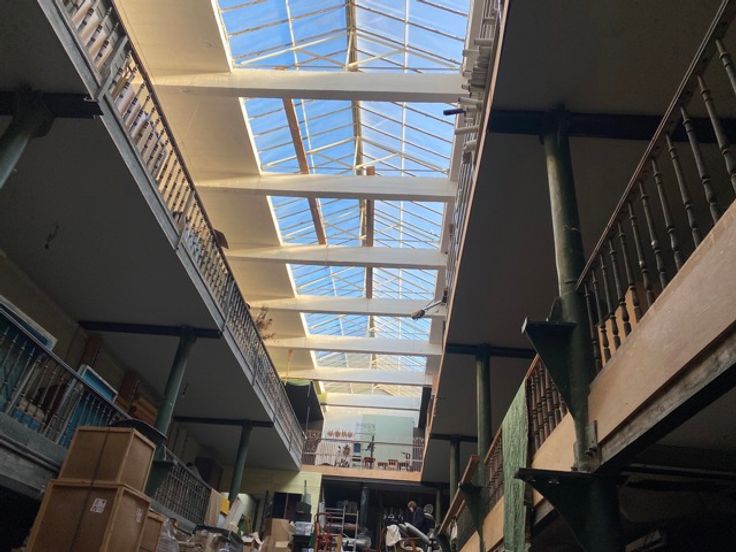 • Houten raamkozijnen uit het bouwjaar, met enkel glas op de onderste verdiepingen en dubbel glas op de bovenste verdieping.