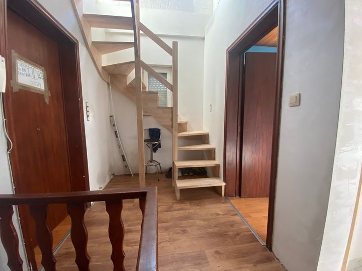 ✅ Sous les combles : deux chambres à coucher, accessibles par un escalier fixe moderne.