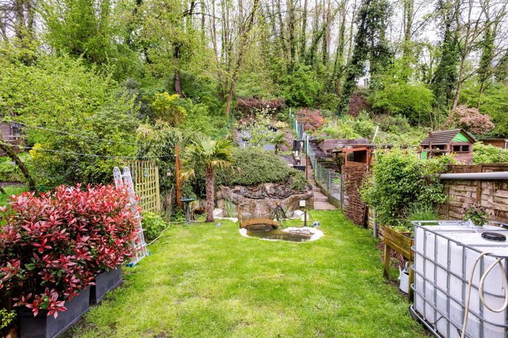 Un agréable jardin de ville et vue sur la verdure ;
