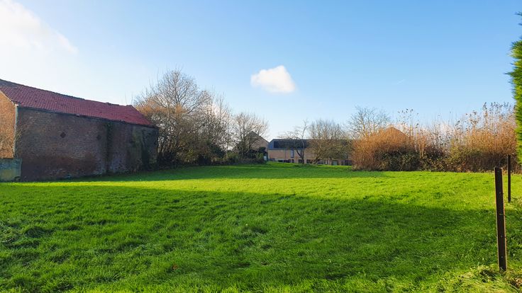 Très beau terrain à bâtir d'une superficie de 11 ares 35 Ca offrant une largeur de ± 26 m et une profondeur de ± 40 m. Rue très calme et campagnarde tout en étant proche des axes routiers. Idéal pour la construction d'une villa 4 façades! Informations et visites au 0489/577.687.