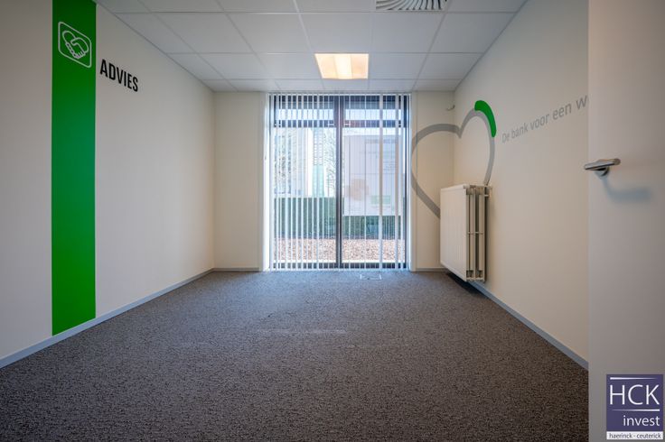 Gelijkvloers: publieke inkomhal - adviesloket palend aan de inkomhal - bureel 1 - bureel 2 - bureel 3 - bureel 4 - lobby tussen de burelen - sanitaire voorzieningen (2 x toilet en lavabo) - kluisruimte;
