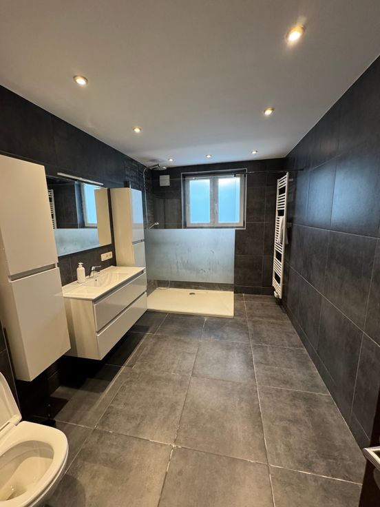 La maison est relativement en bonne état, double vitrage et chauffage central au Mazout. Idéal pour une grande famille qui à besoin d'espace.