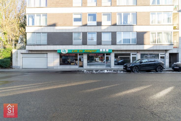 Ukkel – In het gebouw "Regent’s Park", 2 handelsgelijkvloers van +-108 m² in totaal + 1 parkeerplaats, gelegen in een gegeerde wijk aan de drukke Waterloosesteenweg nabij de Bascule en met uitzonderlijke zichtbaarheid dankzij de etalage van ongeveer 8m lang.
