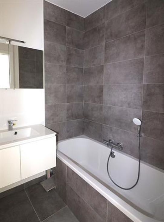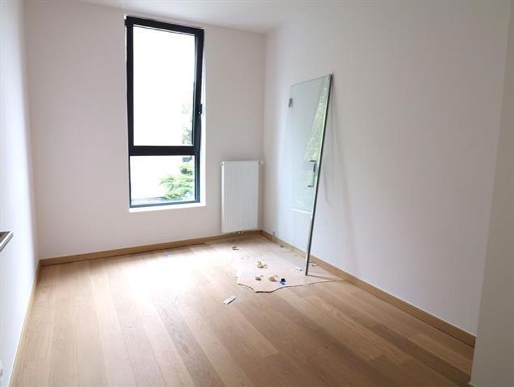 In een nieuw luxe gebouw gelegen in een aangename buurt dicht bij alle voorzieningen (winkels, openbaar vervoer, scholen, park,....) prachtig recent duplex van 125m² bestaande uit op de begane grond: inkomhal, lichte woonkamer (22m²), eetkamer (16m²), super-uitgeruste keuken (9m²) met granieten werkblad en MIELE elektra, bijkeuken, toilet, terras van 9m² en kleine tuin van 36m². Etage: 3 slaapkamers (een van 14m² met en-suite badkamer en twee van 9,5m²), doucheruimte en apart toilet. Centrale verwarming, dubbele beglazing, veiligheidsdeur, ingangstelefoon. Mogelijkheid tot het huren van een parkeerplaats voor 110€/m