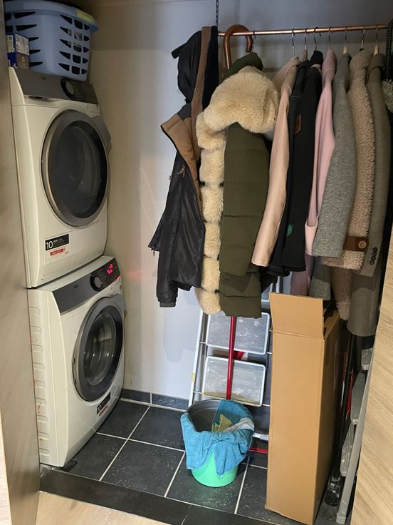 Het appartement is verdeeld in een inkomhal, met 3 bergingen, berging 1 kan U perfect een wasmachine en droogkast plaatsen, alsook een vestiare, berging 2 is een schoenenkast, berging 3 voor poetsgerief ed. Vanuit de inkomhal komt U rechtstreeks terecht in de volledig ingerichte keuken met de nodige inbouwtoestellen.